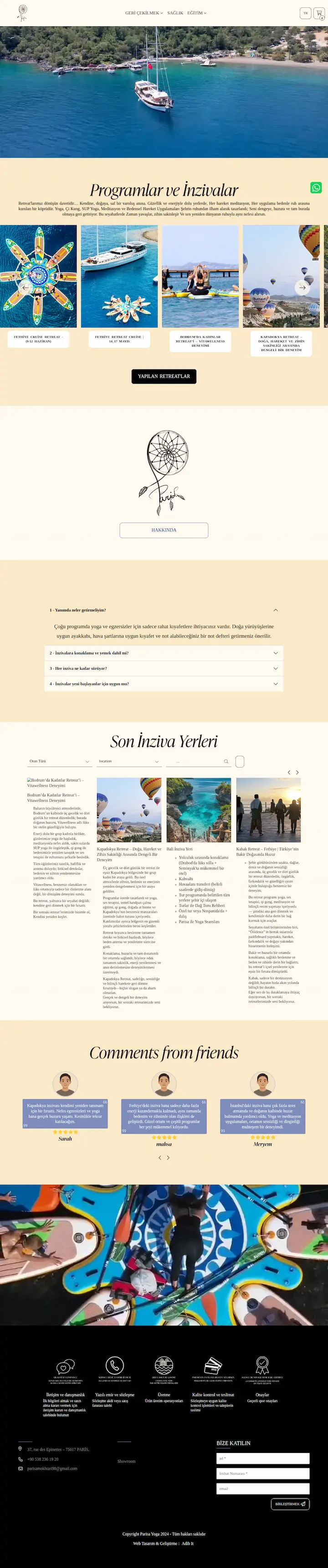 به طور کلی این شرکت روی بازسازی معنوی، تمرینات ذهنآگاهی، یوگا و حرکت بدنی تمرکز دارد و اکثر Retreatها در ترکیه هستند (Kabak، کاپادوکیه، بودروم، Fethiye) و یک گزینه بینالمللی مثل بالی دارد و مخاطبان آن افرادی هستند که به دنبال آرامش، تجدید انرژی، اتصال به طبیعت و خود درونی هستند؛ به نظر برای مبتدی و حرفهای هر دو مناسب است و سبک مدیریتشان به صورت «روحی-تجربی» است نه صرفاً گردشگری تأکید زیادی بر عمیق شدن در تجربه دارد.