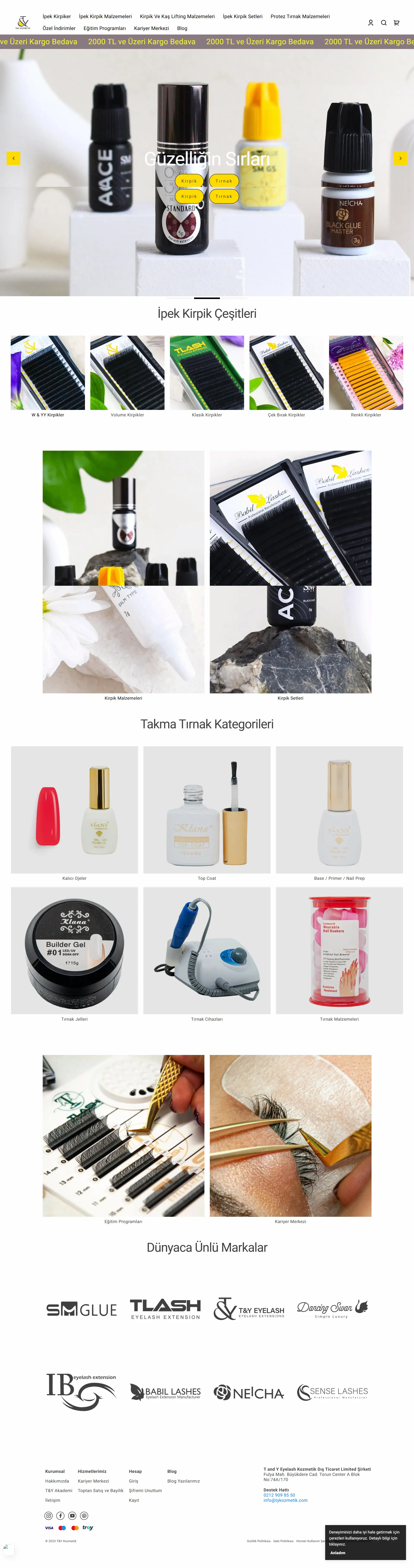 این پروژه شامل طراحی و راه‌اندازی یک فروشگاه اینترنتی جامع و پیشرفته برای برند T&Y Kozmetik است که به عنوان یکی از پیشگامان صنعت زیبایی، به‌طور تخصصی در زمینه تولید و تأمین محصولات مژه (ابریشمی، والیوم)، ناخن و تجهیزات سالنی فعالیت می‌کند. هدف اصلی این پروژه، ایجاد بستری قدرتمند برای فروش آنلاین محصولات، معرفی دوره‌های آموزشی آکادمی و تسهیل ارتباط با مشتریان و نمایندگان فروش بوده است.